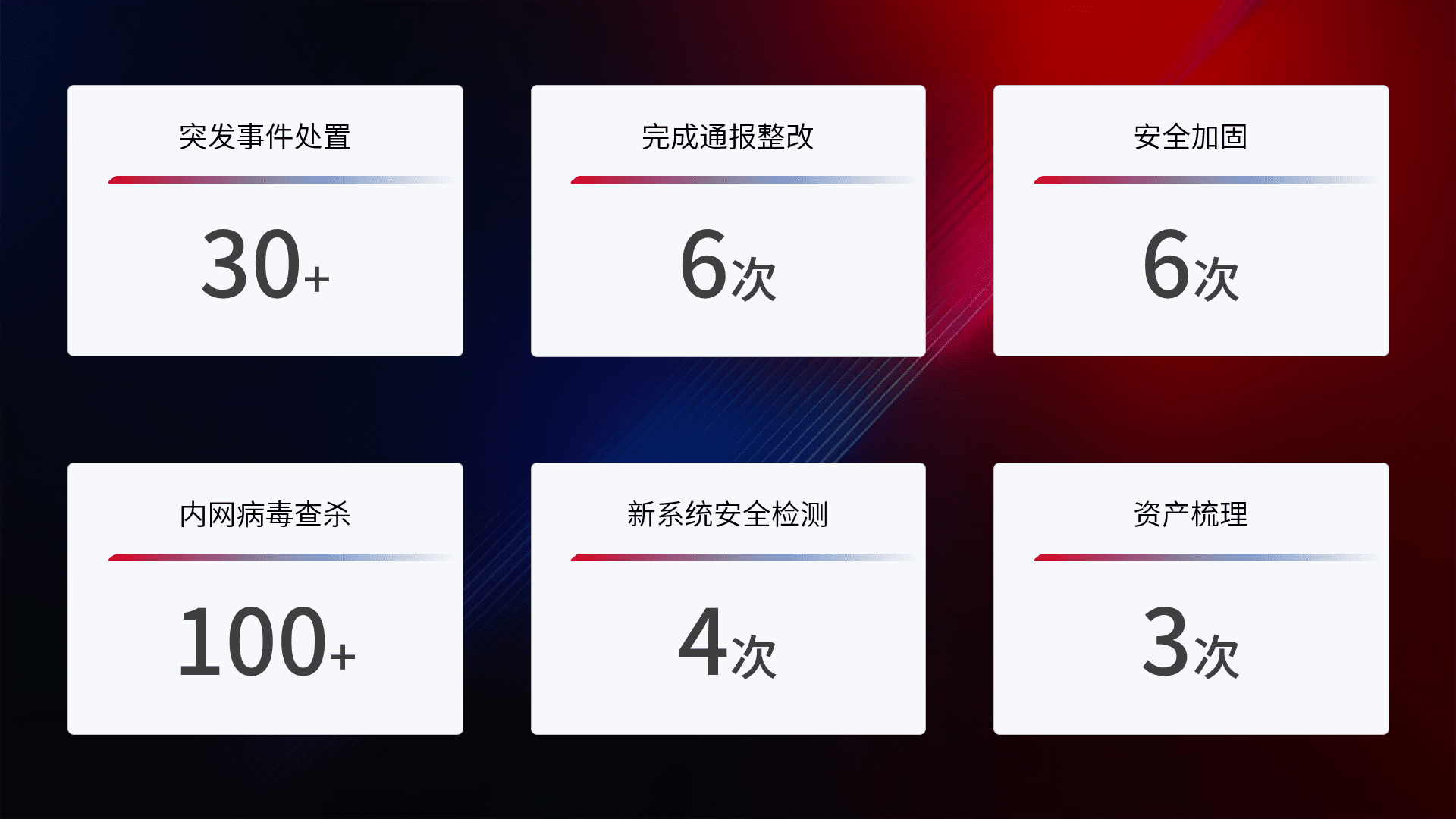网络安全加固与风险管理:通过技术加固手段,,,,如加强区域隔离,,,缩减攻击内网横向移动的范围;优化现有网络安全管理制度,,降低网络威胁暴露面,,,,减少被黑客攻击的可能性。。